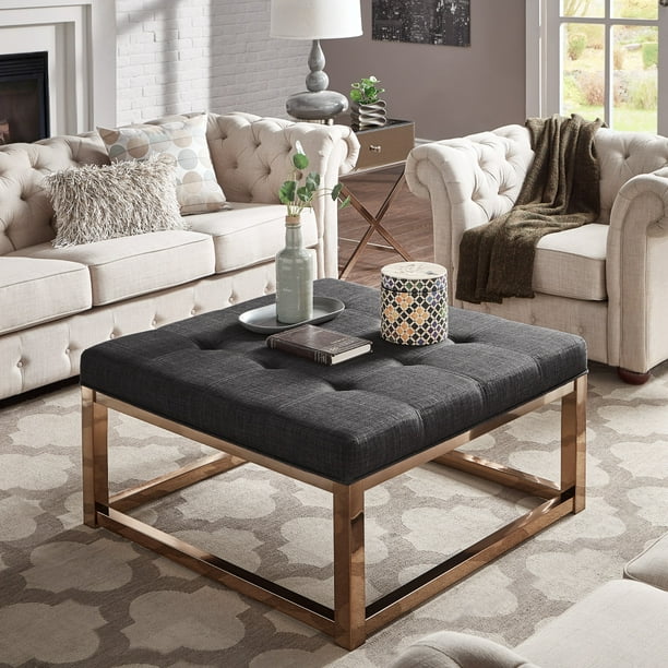 Weston Home Libby Dimpled Tufted Cushion Ottoman Coffee Table With Champagne Gold Straight Base Dark Grey Linen Walmart Com